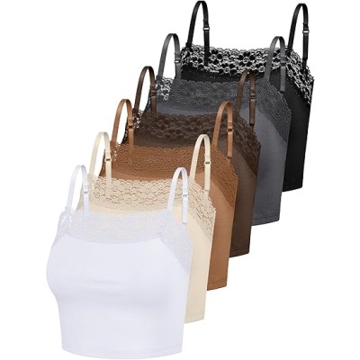 6 Pcs Women's Lace Camisole Spaghetti Strap Bralettes Crop Tops Half Cami Top Bandeau Tank Tops