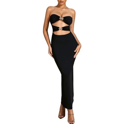 Women's Metal Cut Out Tube Top Dress Strapless Bodycon Maxi Dresses Clubbing Party