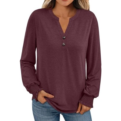 Womens Long Sleeve Shirts Tops V Neck Button Blouse Fall Outfits Casual Basic Fashion Loose Comfy Winter Clothes 2025
