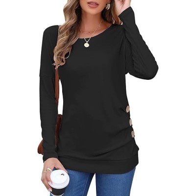 Women Long Sleeve Shirts Tops Fall Tunic Causal Fashion Round Neck Basic Tee