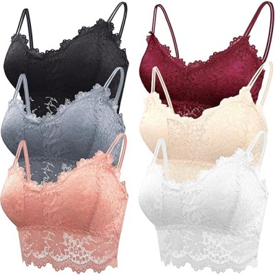 Lace Bandeau Bras with Strap Sunflower Wrapped Bralettes Deep V Neck Padded Sports Bra Bralette for Women Multipack