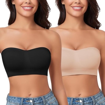 Strapless Bras for Women Bandeau Bra Wireless Non-Slip Silicone Seamless Padded Tube Top Bra