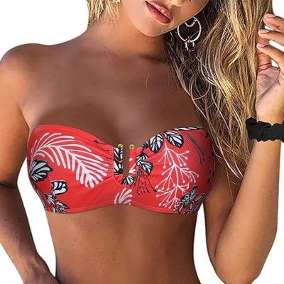 Women Underwire Bikini Top Only A-C Cup Strapless Bathing Suit Top Push Up Bandeau Swimsuit