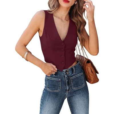 Women's Button Down Sleeveless Vest Top V Neck Slim Fitted Summer Tank Tops