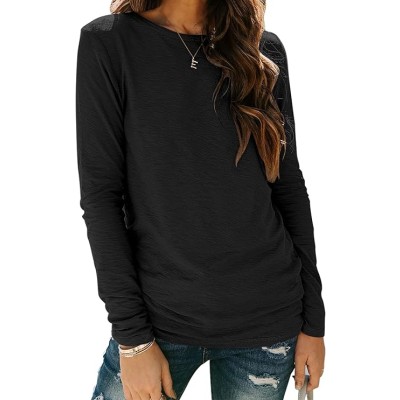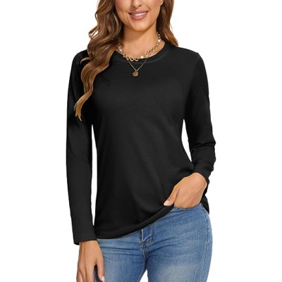 Womens T Shirts Long Sleeve Crew Neck Shirts Basic Tee Tops Blouse