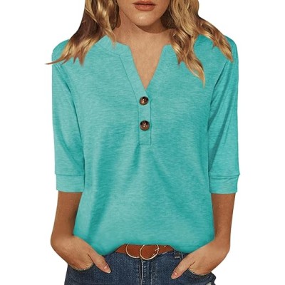 Womens Tops 3/4 Sleeve V Neck Button Down Shirts Business Casual Outfit Basic Tees Summer Top 2025