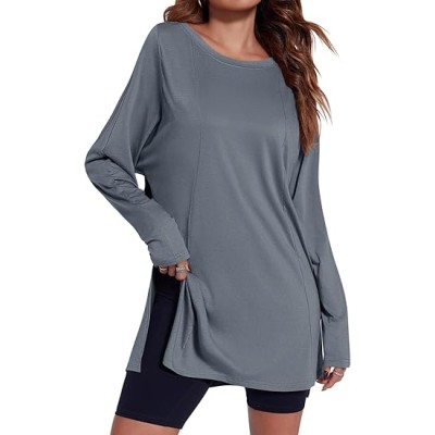 Womens Long Sleeve Tunic Tops Oversized Casual Loose Fit Shirts to Wear with Leggings