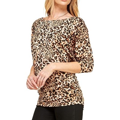 Women's Casual Boat Neck and V-Neck 3/4 Sleeve Draped Dolman Top with Side Shirring Premium Shirt