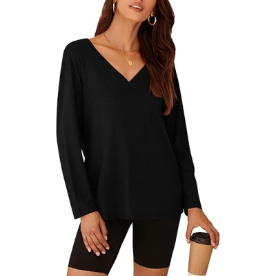 Womens Fall Fashion 2024 T Shirts Casual Long Sleeve V Neck Tunic Tops Loose Basic Blouses