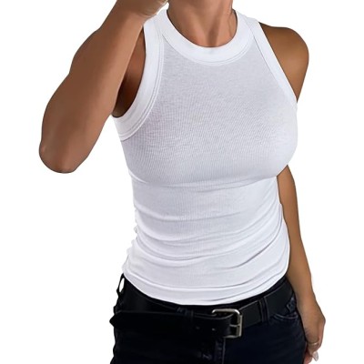 Womens Sleeveless Racerback High Neck Casual Basic Cotton Ribbed Fitted Tank Top