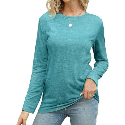 Women Long Sleeve Shirts Tops Fall Tunic Causal Fashion Round Neck Basic Tee
